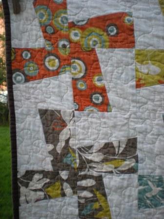 I really love how it turned out. I gave it to my brother and SIL. Matches their living room perfectly. I had the Arcadia Layer cake forever and my SIL loved it but she wouldn't take it from me when I offered it to her to have, so I made her this so she could enjoy the fabric.I am also making progress on some more whirlygig's using Hunky Dory by Chez Moi for Moda. I really love this fabric. It's so girly.