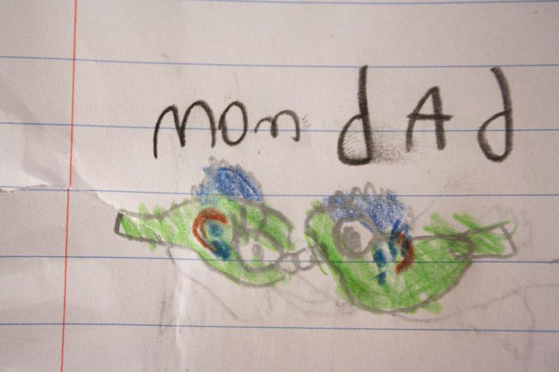 My son drew us an anniversary picture. I asked if we were "love birds" because I thought that was what he drew. He looked at me like I was totally nuts and said "No, mom, you're Bluegills!" I don't think he could have made his dad more proud. These boys love fishing!