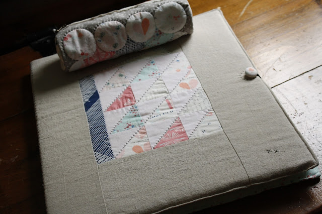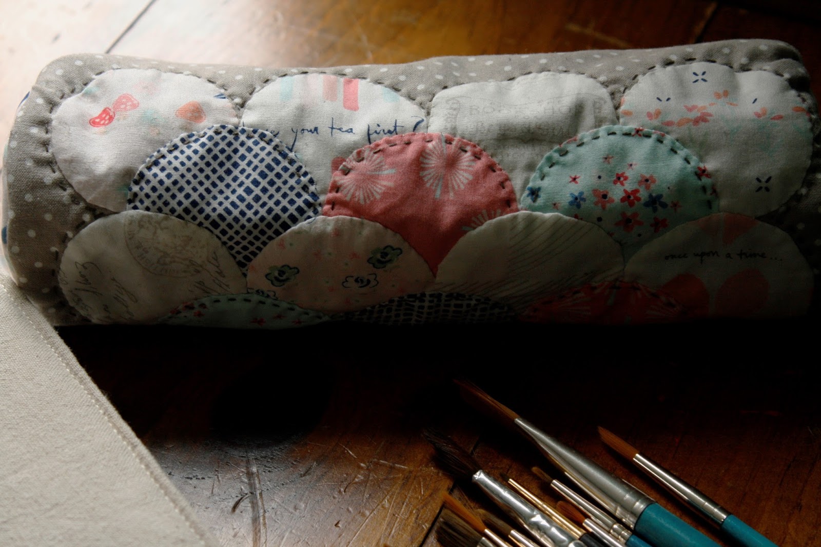 I ended up making the clamshell piece into a pencil case for her paint brushes. I used Kristyne's (Pretty by Hand) pattern.