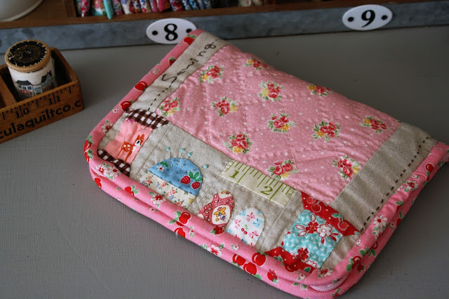 The outside of the kit has all of these sweet touches to it.... applique, embroidery, embellishments and quilting.
